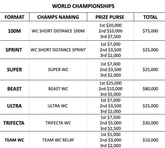 Each World Championship format offers a dedicated prize pool for top finishers, ensuring that Elite athletes at the highest level are rewarded for their performance.